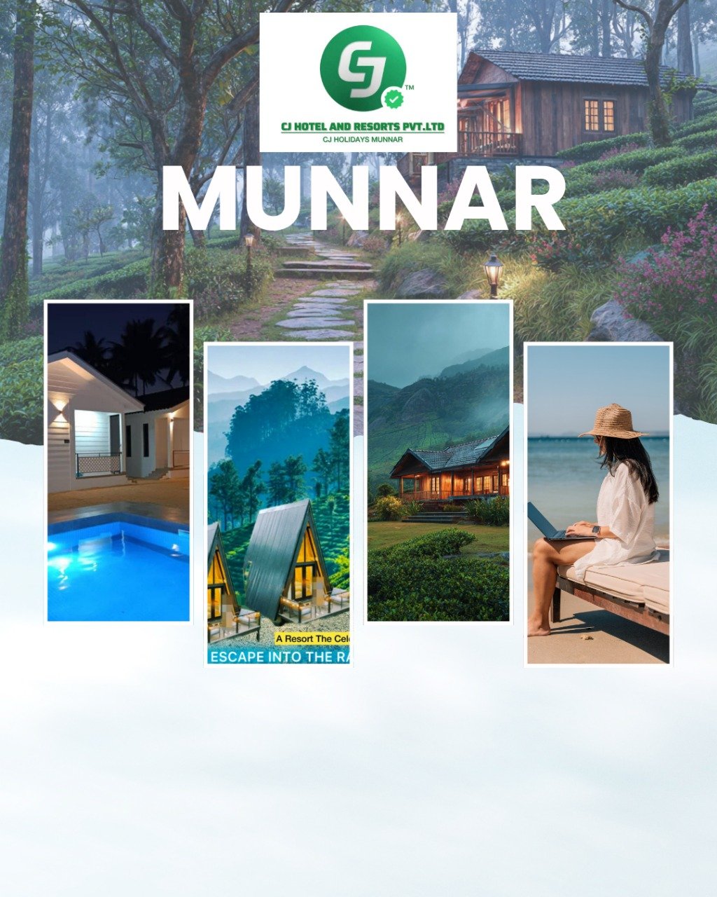 Nestled amidst the lush tea gardens and mist-covered mountains of Munnar, we offer the perfect blend of comfort, adventure, and affordability. At CJ Resorts & Holidays, we craft unforgettable travel experiences with premium cottages, curated tour packages, breathtaking locations, and warm hospitality.