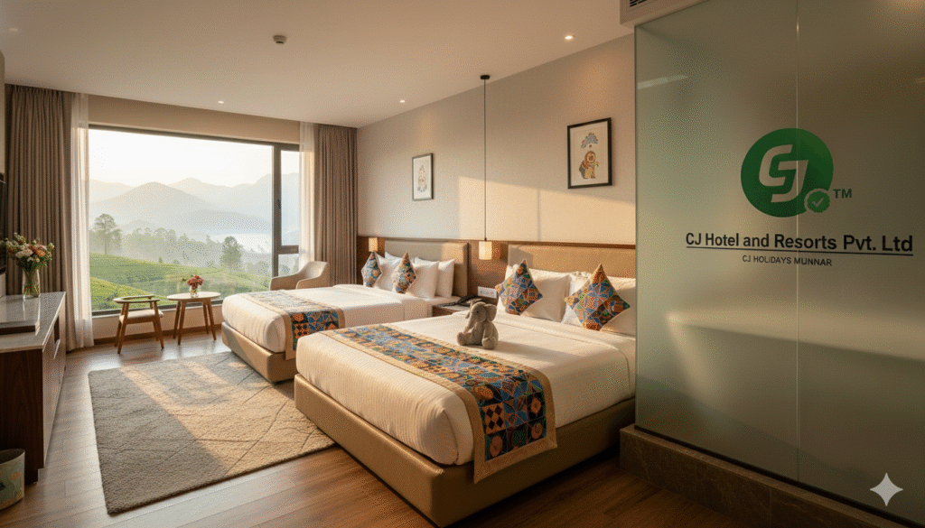 At CJ Hotels & Resorts, every room is crafted to offer comfort, peace, and the beautiful charm of Munnar. Whether you are a family, a couple, or a solo traveler, we have the perfect room that fits your style and budget.